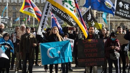 Protesters in London, UK, campaigning against human rights abuses in China, 24 October 2021. (Photo by Wiktor Szymanowicz/Anadolu Agency via Getty Images)
