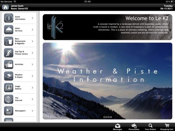 The iRiS Guest Valet enables guests to interact through iPads or smartphone, from the comfort of their room. Displaying all hotel services, this multi-lingual application allows guests to view what the hotel and its surroundings have to offer, as well as interact and book with ease. In-room dining comes to life, spas become essential, chefs’ daily specials are sent to every room, and promotions can be updated instantly. Guests can shop online, make dinner reservations, book excursions, control their room temperature, surf the web and much more. Enhancing the overall guest experience, this application reduces hotel costs, generates revenue and is environmentally friendly.