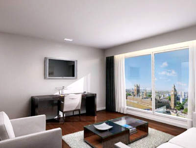 The Park Plaza Westminster Bridge hotel's studio apartments and penthouses include state-of-the-art features such as flat-screen televisions and have sweeping views over central London.