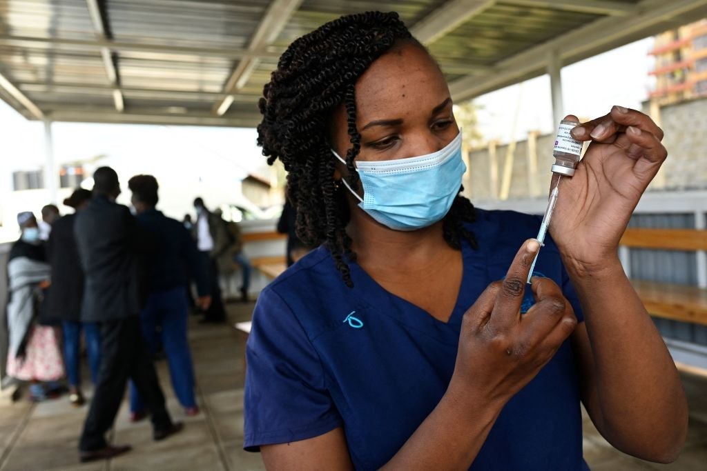 [caption id="attachment_49669" align="alignnone" width="658"] A health worker fills a syringe with a dose of the Covid-19 vaccine in Kenya, but…